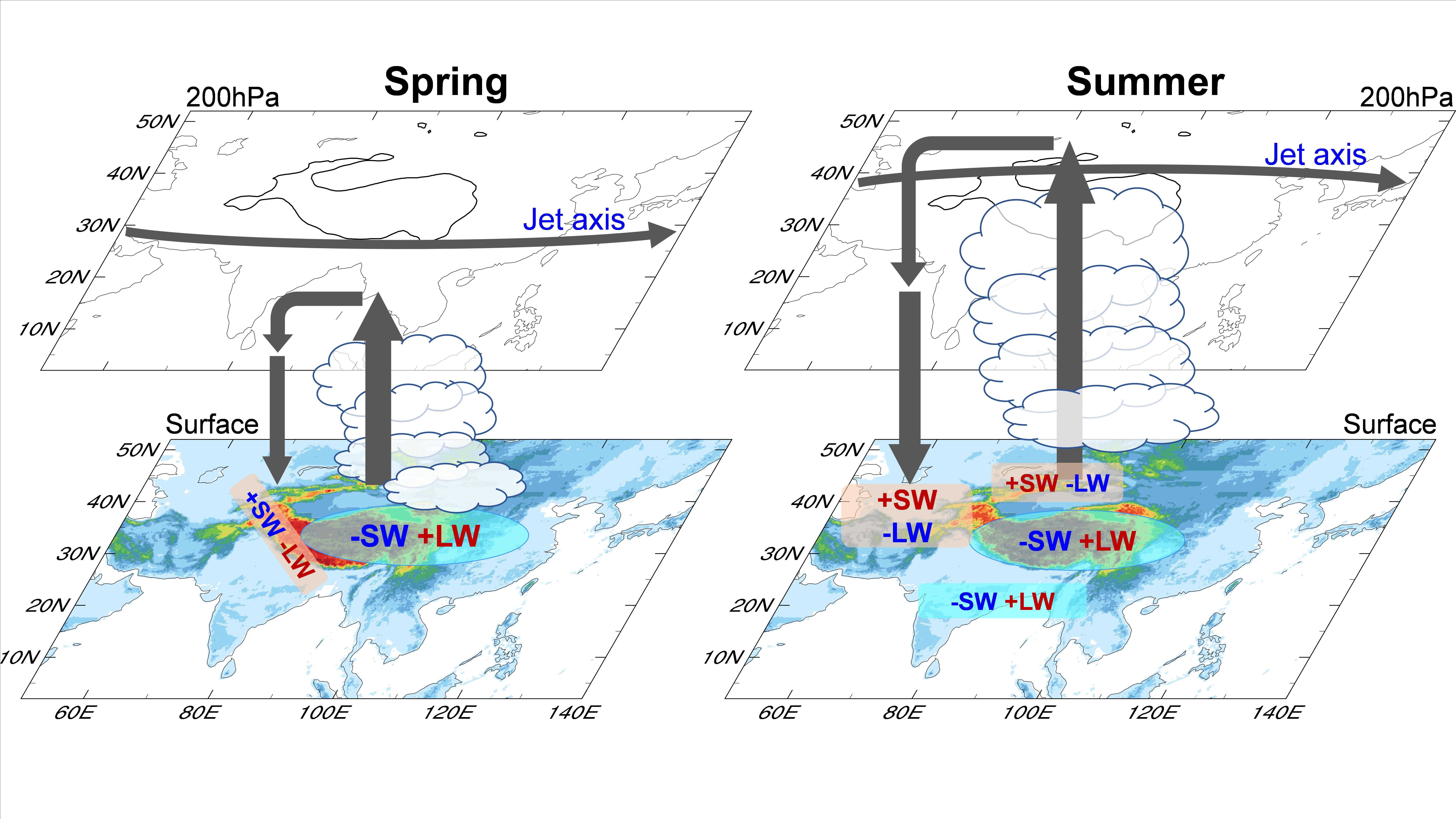 李剑东等-JGR-A: 新研究揭示青藏高原地表感热加热对周边亚洲区域云量和地表辐射收支的影响