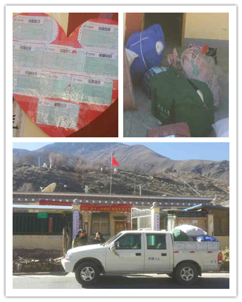 2015年元旦后,2012硕同学们捐赠的爱心衣物运抵西藏昌都地区八宿县拉根乡瓦来村 ,为那里缺衣过冬的贫困学生送去浓浓的一份暖意。瓦来村是一个贫困村,当地资源匮乏,藏族驻村干部泽旺卓玛调查了解到,因为村里没有集体经济,当地共有家中生活贫困的114名学生没有被顾及到,希望能帮助学生们募集到一批过冬的衣物和学习用品。