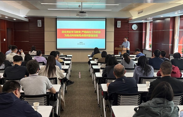 林朝晖以《深化党纪学习教育 严明岗位工作纪律 为抢占科技制高点提供坚强保障》为题作宣讲报告。他强调,要深刻认识严明岗位工作纪律是深化党纪学习教育、发挥体系化建制化优势的内在要求。党员尤其是领导干部要发挥表率作用,带头严格执行“三项制度”要求,抓好贯彻落实,与部门科研业务工作结合起来,以严明的纪律保障抢占科技制高点核心任务顺利实施。