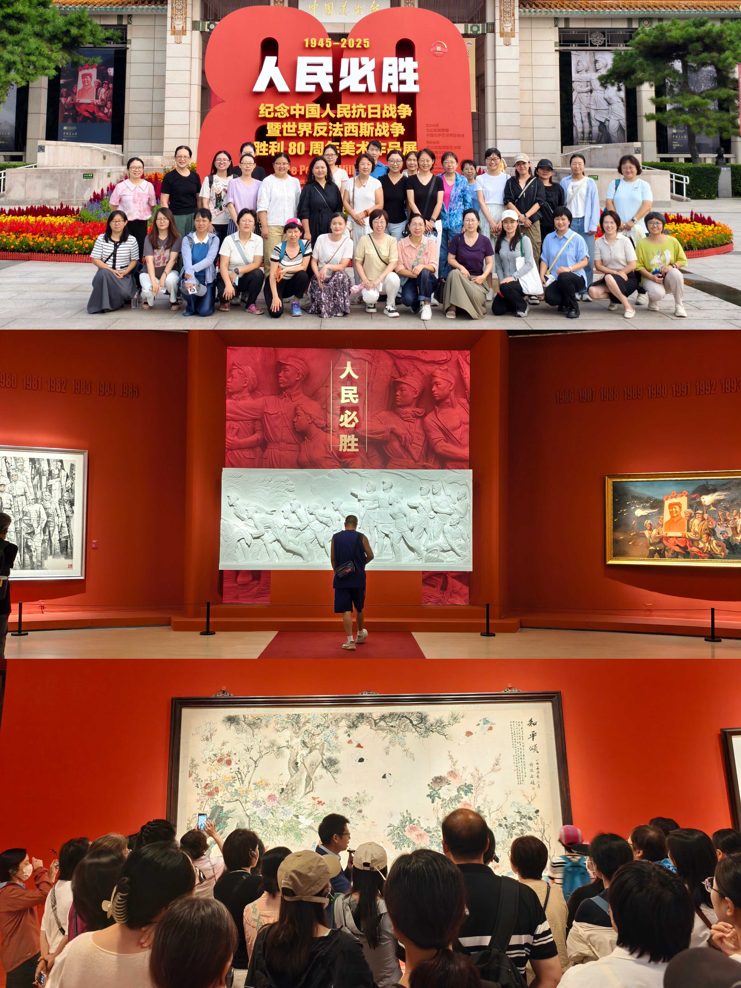 2025年9月4日初秋清晨,我所妇委会组织女职工,怀揣着对历史的敬意与对艺术的向往,走进中国美术馆,参观“人民必胜——纪念中国人民抗日战争暨世界反法西斯战争胜利80周年美术作品展”。展览以“人民必胜”为核心思想,通过“序篇·民族觉醒”“国难当头”“浴血奋战”“伟大胜利”“走向复兴”五个篇章,精心呈现300余幅经典与新创佳作。这些作品以丹青写就史诗,借翰墨铸成丰碑,引领观众重溯那段波澜壮阔的民族记忆。