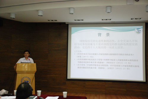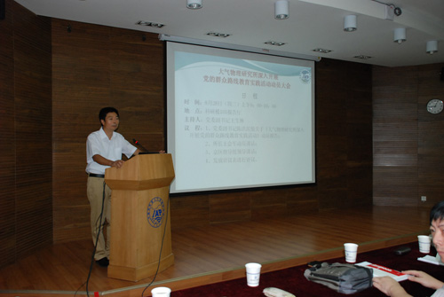 陈洪滨传达了中央、院党组和京区党委关于群众路线教育实践活动的主要精神和要求,对大气所的教育实践活动进行了具体的安排和部署。他指出,围绕保持党的先进性和纯洁性,在全党深入开展以为民务实清廉为主要内容的党的群众路线教育实践活动,是党的十八大做出的一项重大部署。我们要深入贯彻实施中央和院党组的主要精神,以所级领导班子、领导成员、处级及以上领导干部为重点,紧密结合工作实际,进一步突出作风建设,坚决反对形式主义、官僚主义、享乐主义和奢靡之风,认真贯彻“照镜子、正衣冠、洗洗澡、治治病”的总要求,明确目标任务,聚焦作风建设,切实抓好“学习教育、听取意见;查摆问题、开展批评;整改落实、建章立制”三个重点环节的落实,着力解决职工群众反映强烈的突出问题,教育引导全所党员牢固树立“创新科技、服务国家、造福人民”的科技价值观,把满足国家经济社会发展需求和人民群众生产生活期盼作为科技创新的基本出发点和主攻方向,深入实施“创新2020”和“一三五”规划,努力实现“四个率先”的奋斗目标,为实施创新驱动发展战略、建设创新型国家做出贡献。他强调要把教育实践活动与学习贯彻习近平总书记视察中科院的重要讲话精神紧密结合起来,与深入实施“创新2020”和推动落实“一三五”规划的各项举措紧密结合起来,与 “聚焦献力”主题实践活动紧密结合起来,与完成全年各项重点工作紧密结合起来。通过教育实践活动,不断汇聚各方面力量和全所智慧,推动研究所知识创新工程的开展,促进研究所党的建设和中心工作共同发展,做到“两手抓、两不误、两促进”,为研究所实现创新跨越提供保证。