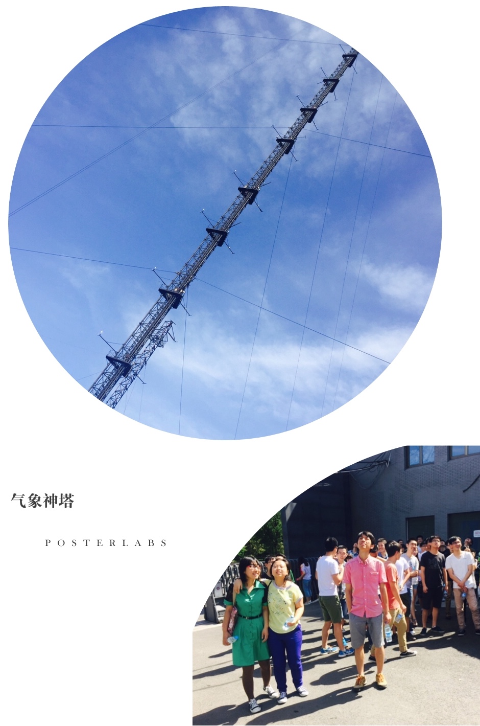 同学们先由科普小组志愿讲解员唐颖潇(2012级硕博)带领,参观了325米高的气象观测塔,以及地面观测站的设备仪器,并在展板区学习了雾霾与全球气候变化等方面的知识。