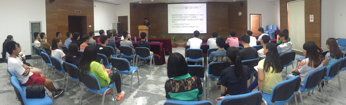 然后同学们来到所本部101会议室,由大气分中心的吉东生高工给大家做了一场生动的雾霾科普讲座。吉老师幽默的语言和与生俱来的东北腔引发了同学们的阵阵笑声。报告之后,同学们还结合最近热点新闻问了许多问题,比如“北京出台了严厉的控烟禁令,吸烟是否对PM2.5有很大贡献?”“柴静的《穹顶之下》里的数据是否有问题?”等等,吉老师一一予以解答。