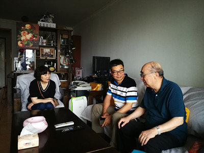 走进老党员梁山家中,陈洪滨代表所党委送上了节日的祝福。因患有老年性耳聋,落座后,他把小黑板和笔递给陈洪滨用来交谈。他的家人指着书桌上的红旗和党旗告诉我们,6月初梁老就催促家人购买新的红旗和党旗,期盼着七一的到来。陈洪滨叮嘱老人注意保重身体,并祝老人家健康快乐。