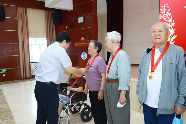 陆日宇代表党委向获得纪念章的37名老党员表示祝贺,他指出,在建党100周年之际,党中央决定为党龄50年以上的党员颁发纪念章,充分体现了党对老同志的政治关怀和尊崇厚待,体现了党对老同志历史贡献的高度评价和充分肯定。征途漫漫,惟有奋斗。中国共产党历经百年风雨,见证峥嵘岁月。我们要向为研究所做出重要贡献的老同志学习,不忘初心,牢记使命,坚定理想信念,传承红色基因,铭记崇高责任,务实砥砺奋进,为研究所的改革发展和建设科技强国、实现高水平科技自立自强做出新的贡献。