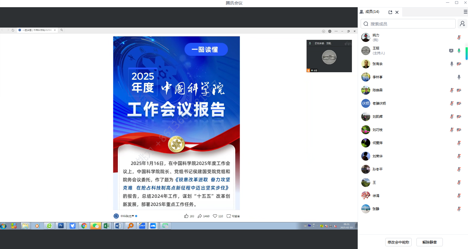 2025年2月19日上午,离退休党总支召开(线上)扩大会议,各支部委员参会,党总支副书记王昭主持会议。
