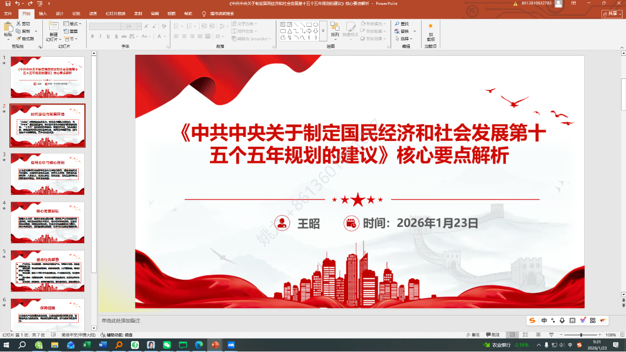 首先,王昭带领全体参会人员集中学习了习近平总书记关于《中共中央关于制定国民经济和社会发展第十五个五年规划的建议》的说明及《建议》全文,详细解读了"十五五"规划的起草背景、核心要义与战略部署。