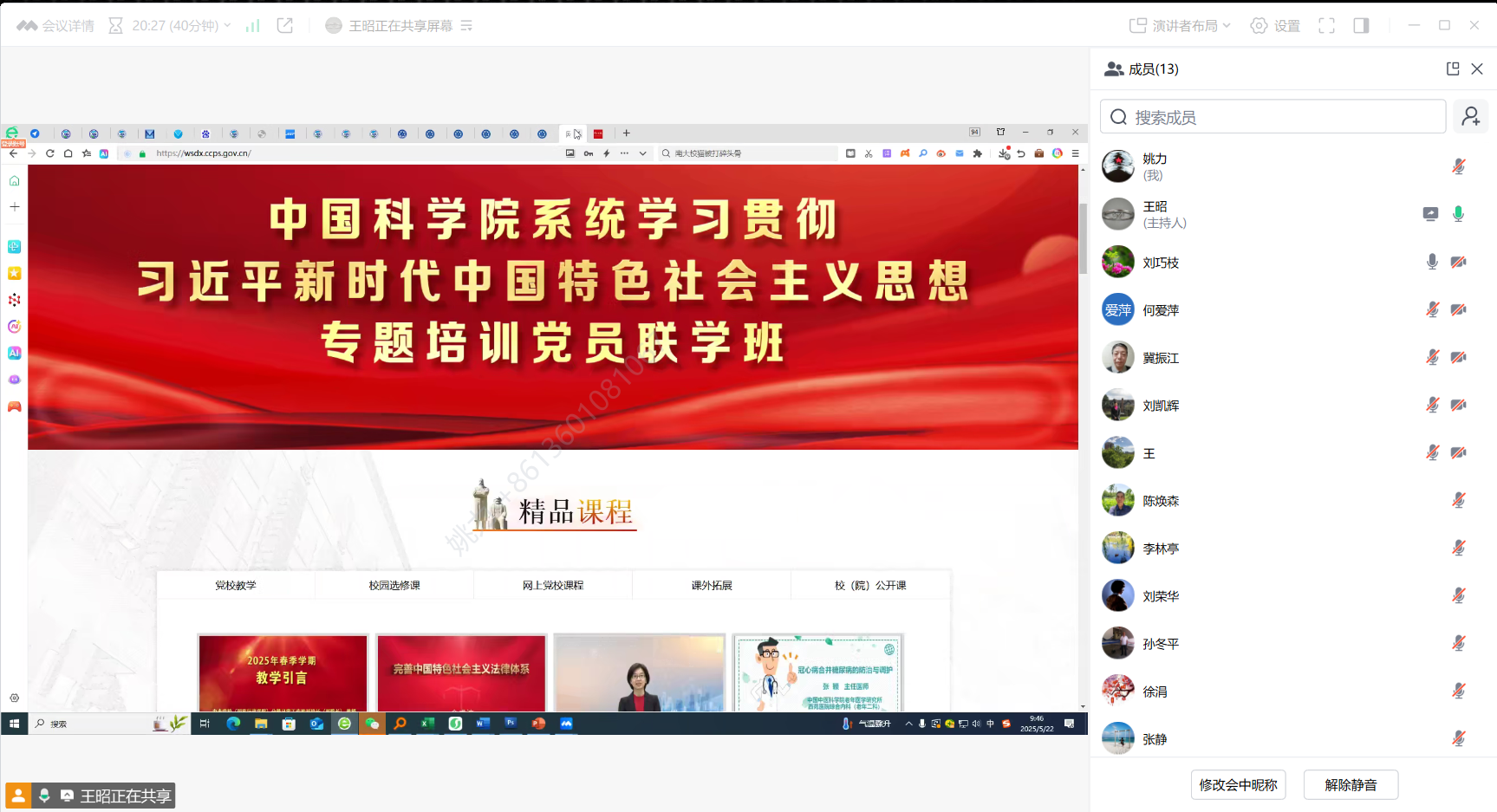 最后,继续开展中国科学院系统学习贯彻习近平新时代中国特色社会主义思想专题培训党员联学班,对专题内容进行了深入学习。