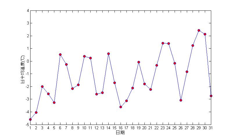 图2 北京首都机场2014年12月逐日地面平均气温,已经没有了日内循环,但气温的日际变化可以看得更清楚