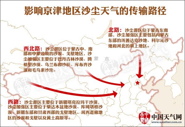 比如:2000年3月,沙尘飞至北京,瞬时风速超过8级,狂风夹带着滚滚黄沙在数小时内将整个北京城吞噬,部分地区能见度不足100m。2002年3月,沙尘两次袭击北京,持续笼罩时间超过100个小时。2006年4月,北京再遇强沙尘暴,一夜总降尘量高达33万吨。2015年,根据北京市气象台统计结果,北京先后出现六次沙尘事件,与去年同期相比,增加3次。其中4月15日的沙尘事件为近13年来最强沙尘暴,个别观测站点PM10浓度超过1000。