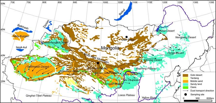 我国干旱和半干旱区域总面积达到350万平方公里,主要集中在北部和西北部(图4),平均每年起沙量达800Tg(1Tg=1012克=106吨)。沙源面积广,起沙量大。
