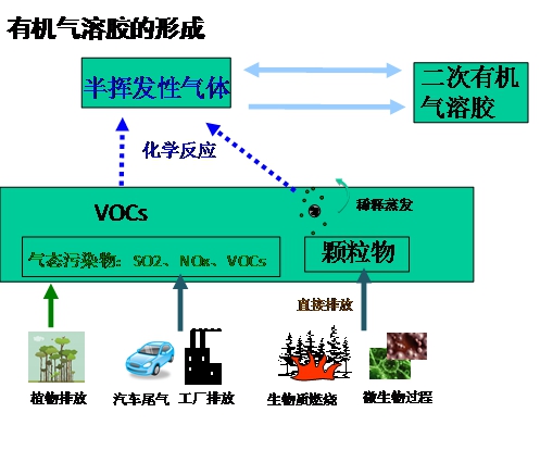 近期研究表明在城市地区SOA 对有机气溶胶的贡献大约为30~60%,在农村以及对流层中的贡献占到70%以上。SOA对于大气能见度、空气质量、气候变化、对流层的氧化能力以及公共健康都有很大的危害作用。