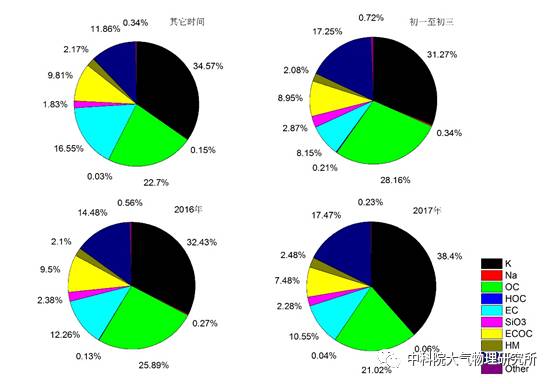 还有一个有趣的发现就是,烟花爆竹影响的硫酸盐,硝酸盐等成份多以低价态的形式存在,这也是烟花爆竹这爆发时间短,影响距离近的一个显著特征。