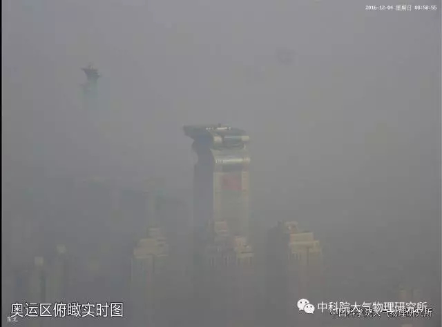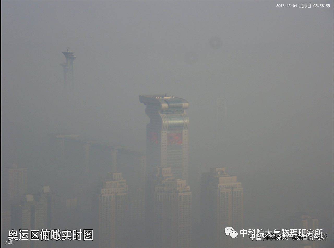 PM2.5浓度较高时,我所325米气象观测塔的周边实时监测系统传回的画面