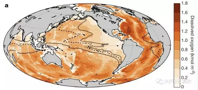 请看全球海洋溶解氧的平均分布图 ↓↓↓