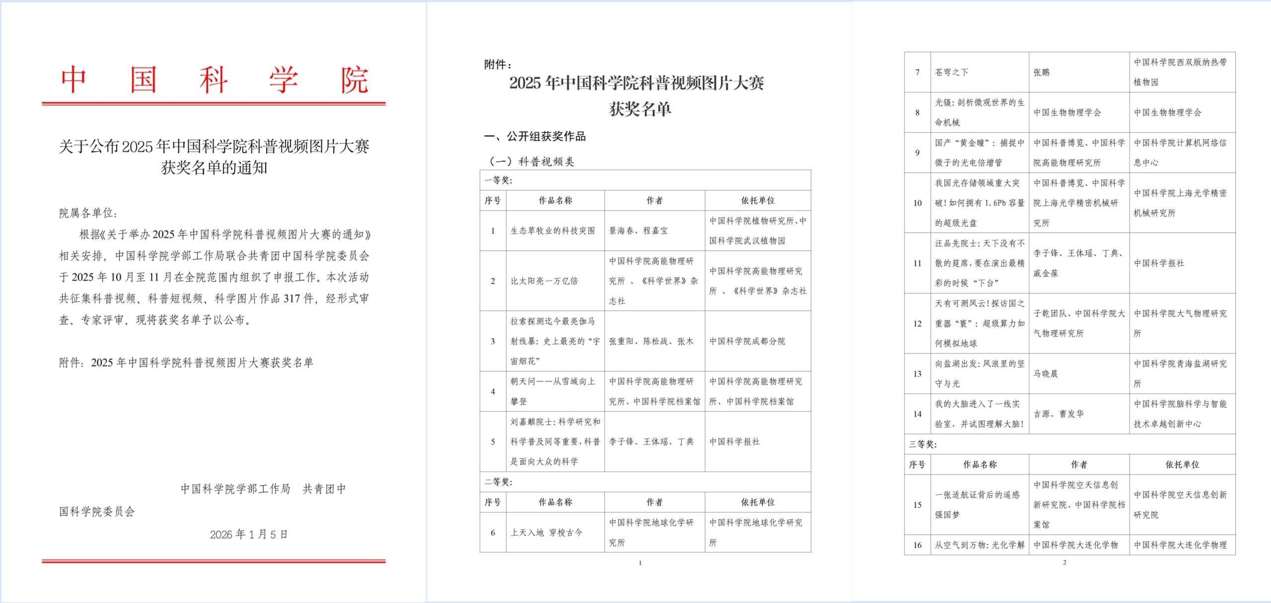 大气所荣获中国科学院科普视频图片大赛二等奖