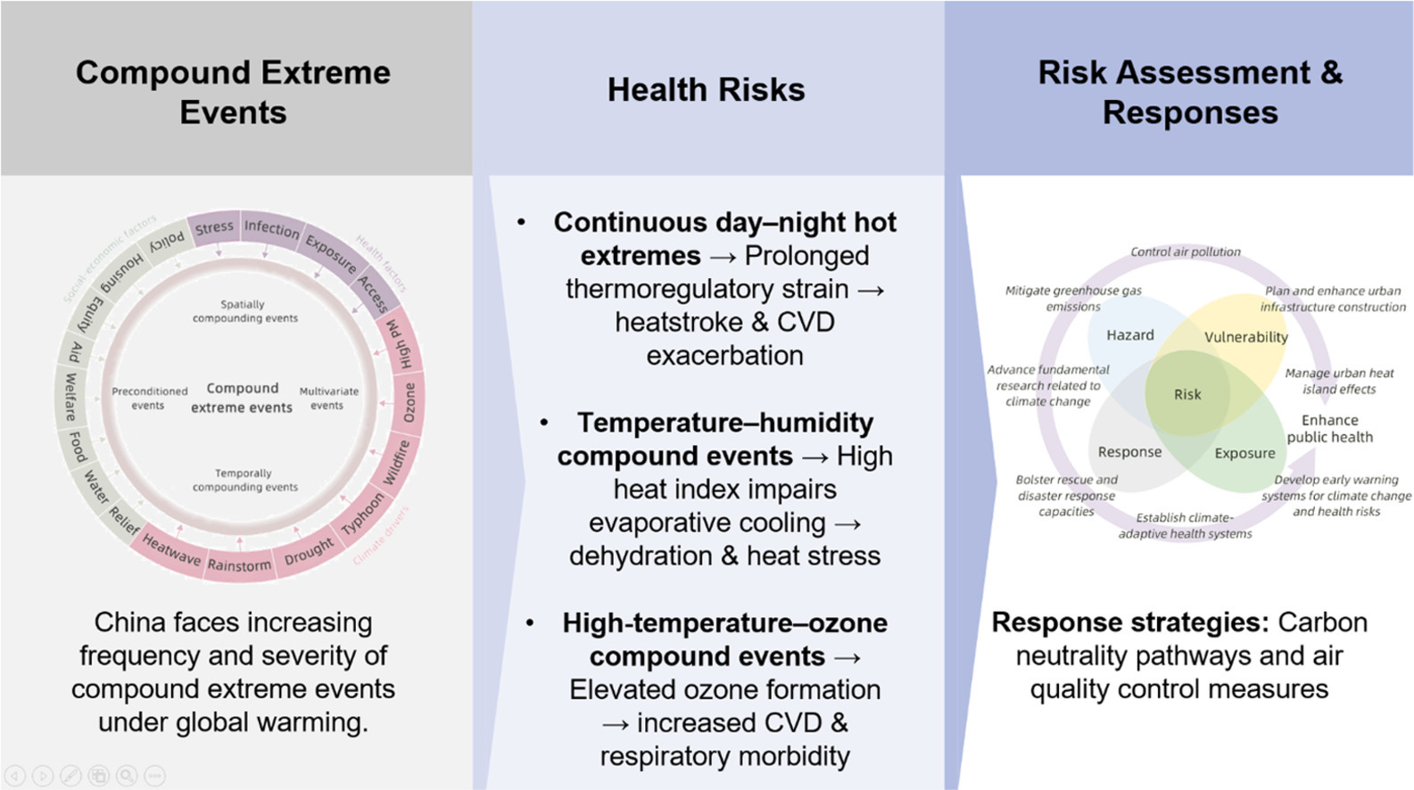 Tang,H.,Huang,G.,Hu,K.,Wang,J.,Huang,C.,& Yang,X. (2025). Compound extreme events and health risks in China: A review. Atmospheric and Oceanic Science Letters,100647.
