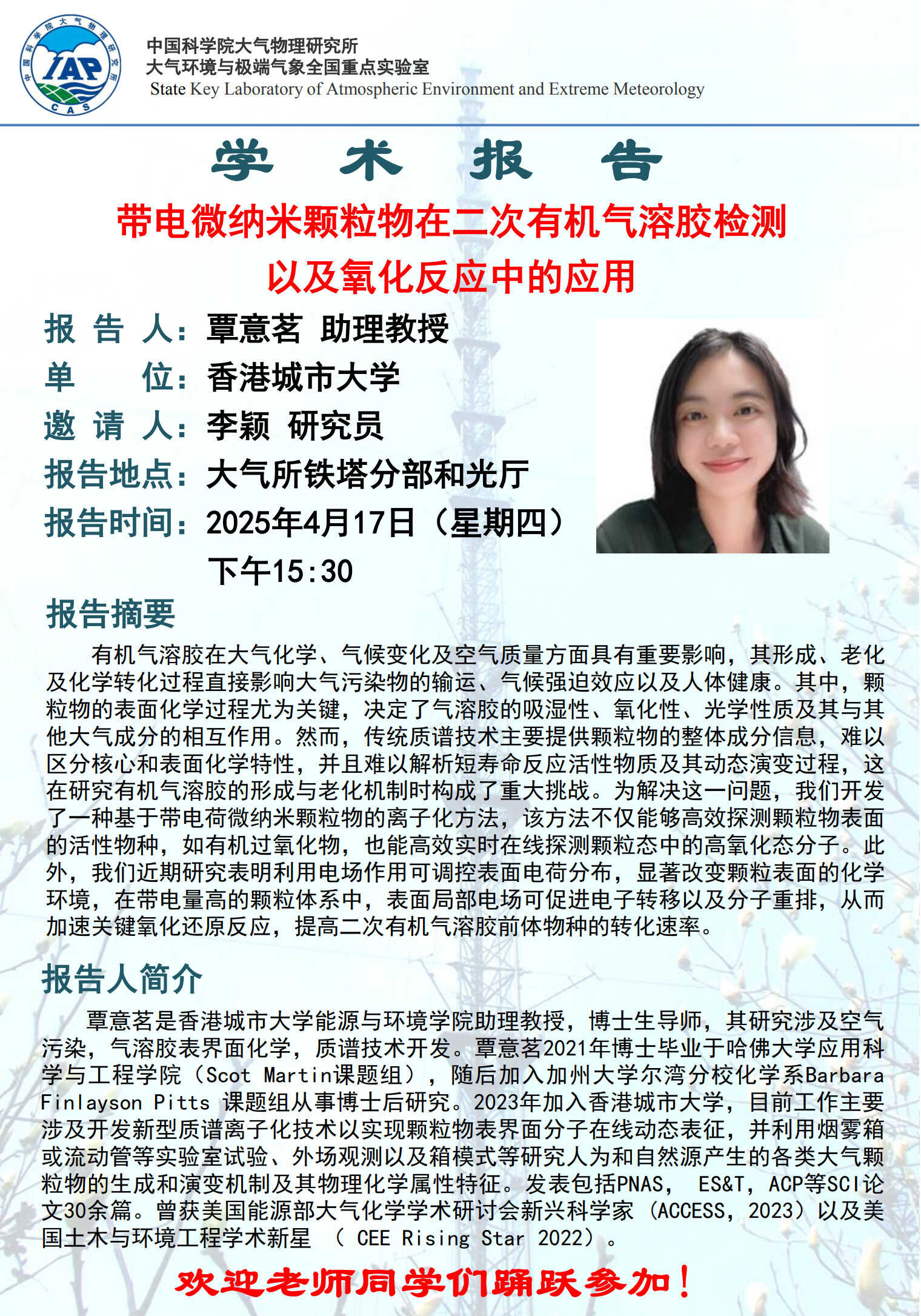 【4.17】带电微纳米颗粒物在二次有机气溶胶检测以及氧化反应中的应用