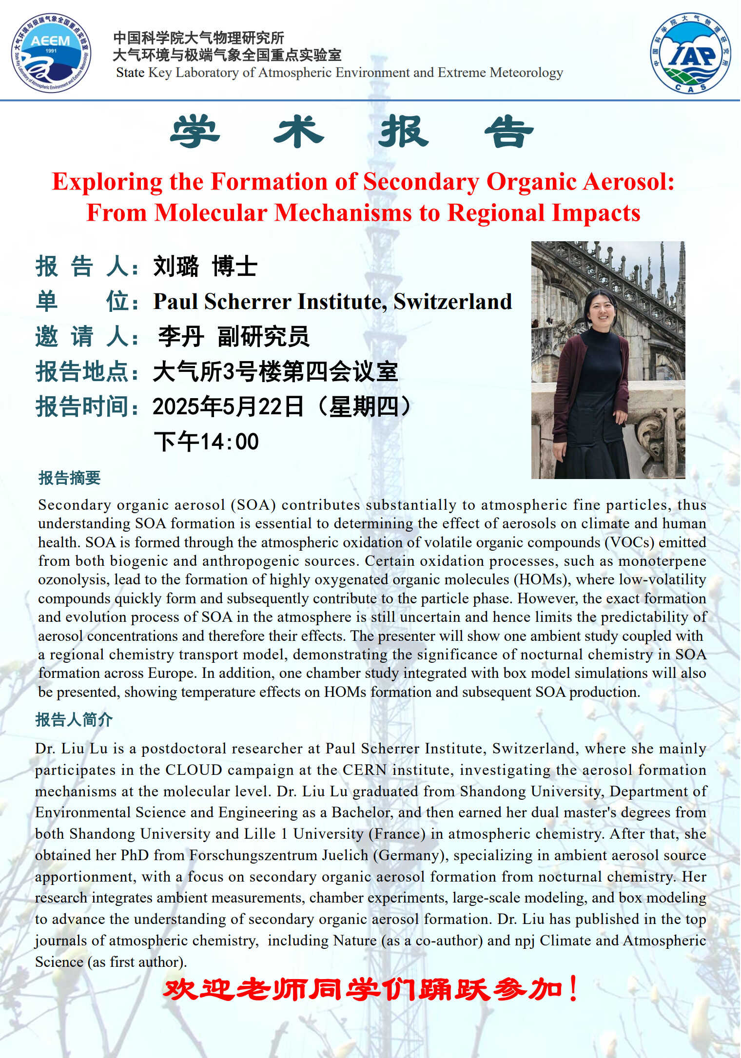 【5.22】Exploring the Formation of Secondary Organic Aerosol: From Molecular Mechanisms to Regional Impacts
