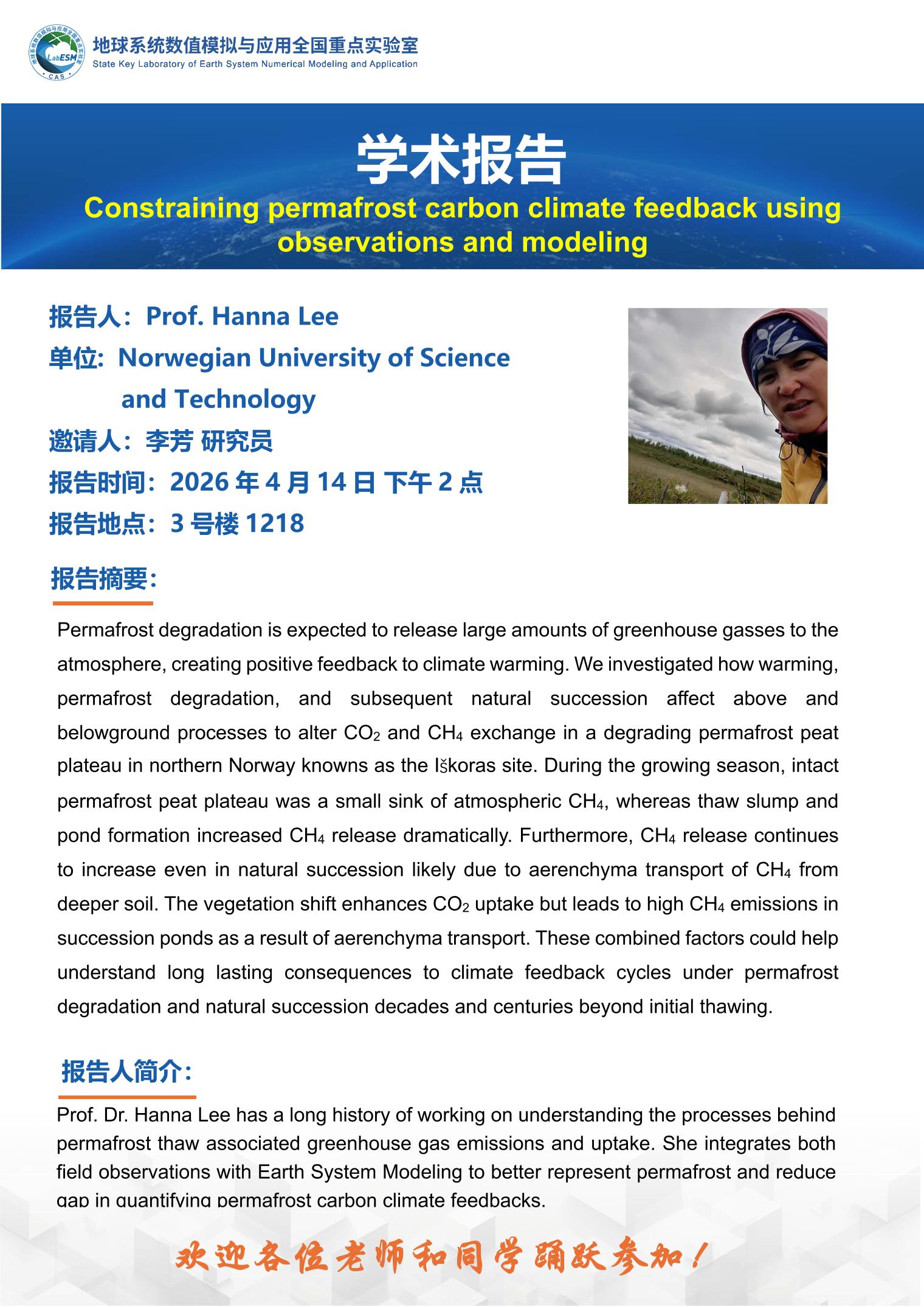 【4.14】Constraining permafrost carbon climate feedback using observations and modeling