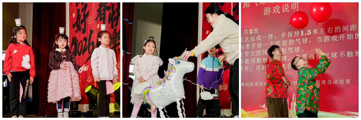 联欢会还穿插了多轮抽奖与趣味游戏环节。“顶杯运纸”、“马到成功”、“抛球穿衣”等游戏吸引了职工及小朋友踊跃参与,台上台下笑声不断,惊喜连连。最终,联欢会在机关分工会的大合唱《走向复兴》激昂旋律中圆满落幕。