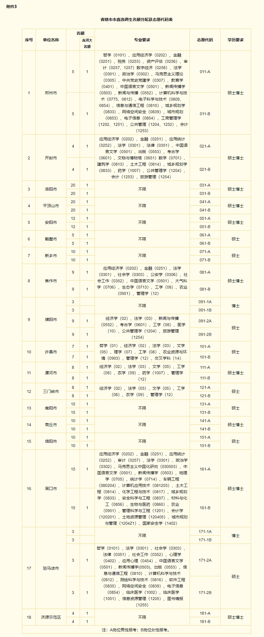(三)服务年限。省直选调生在录用单位最低服务年限为5年;省辖市市直选调生在录用单位最低服务年限为3年,在本省辖市内最低服务年限为5年,均含基层锻炼时间。