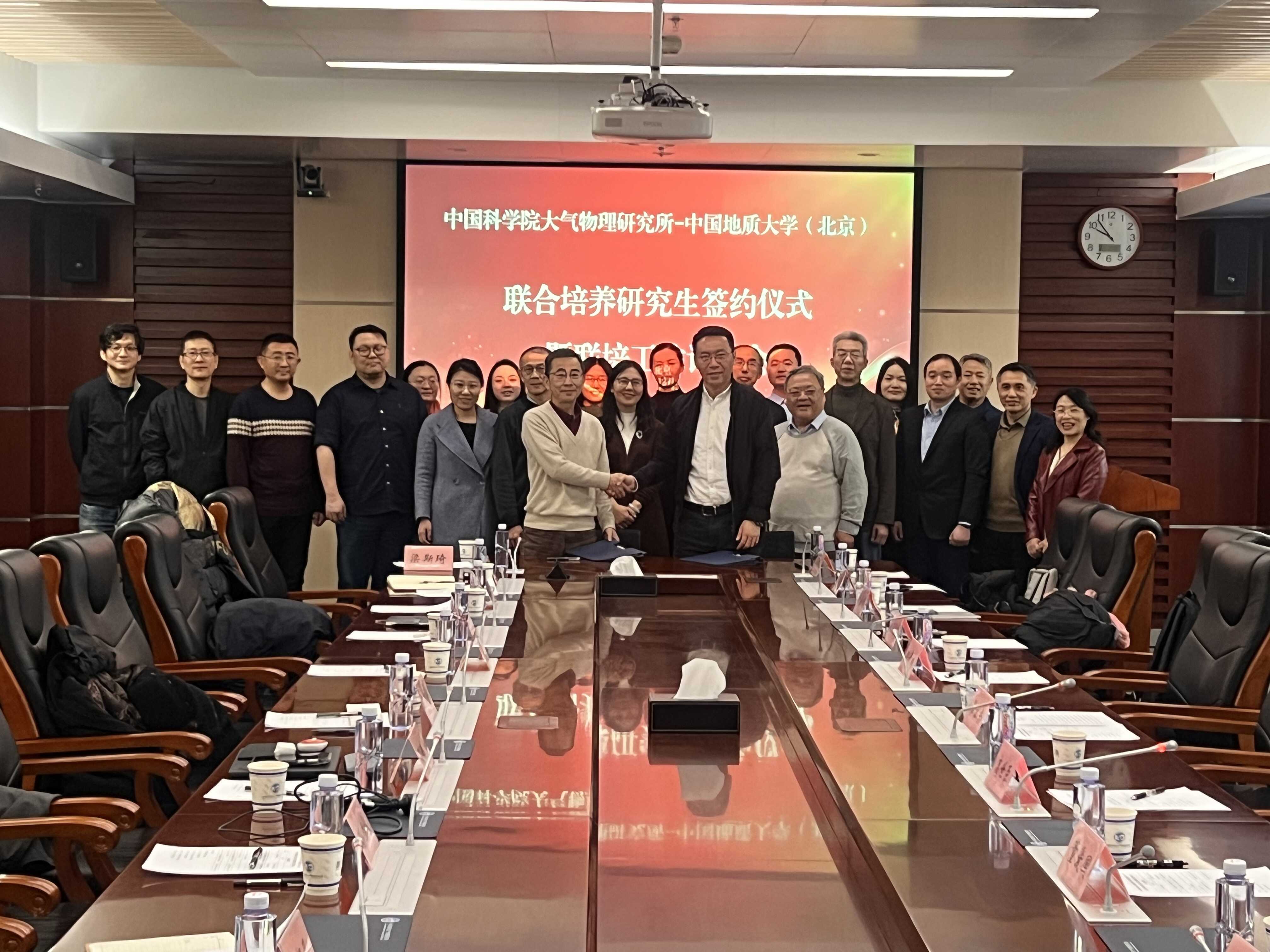 2025年12月30日,中国科学院大气物理研究所(以下简称“大气所”)与中国地质大学(北京)(以下简称“地大(北京)”)联合培养研究生签约仪式暨联培工作讨论会在大气所3号楼第二会议室成功举行。大气所党委书记、副所长陆日宇研究员,地大(北京)党委副书记多宏宇出席会议并致辞。双方相关研究室、学院、职能部门、导师和研究生代表等30余人参会。会议由大气所研究生部主任孙鹏宇主持。