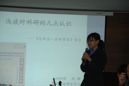 大家提交的读书报告进行了简短的点评和推介,鼓励大家要养成独立思考的习惯,并预祝读书沙龙取得成功。8位主讲人的阅读范围很广,涉及管理学、社会学、心理学等,与大家探讨的内容包括什么是学习型组织、再读《共产党宣言》、马斯洛的《动机与人格》解读、由“钱学森”之问引发的思考、科学研究中的负责行为、对学术左派的思考等等,有的主讲人回顾了自己学习和读书的经历,向大家推荐了对自己产生过重大影响的书籍和格言,有的则阐述了自己成长过程中的挫折和奋起,以及在每个人生转折点的思考和探索。大多数主讲人都制作了精美的PPT,配合着深入浅出的讲解,每当听到共鸣之处,大家不禁会心一笑。在互动环节,大家积极发言参与讨论,表达自己的观点和听讲的感受。