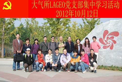 为迎接党的十八大召开,LAGEO支部根据所党办有关部署,积极开展工作,组织全体党员传达学习中科院党组夏季扩大会议精神;与此同时在所党办和研究室的支持下,与室工会联合组织党员职工开展了秋游活动。