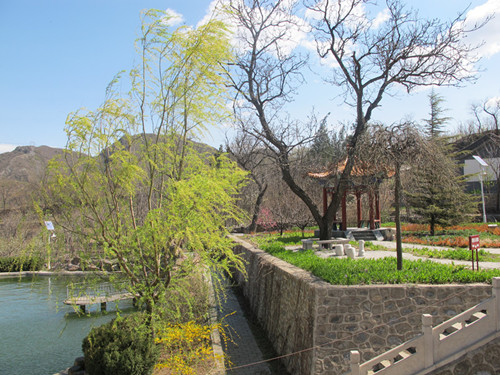首先参观的是被纳入北京市新型农村社区十个试点之一的门头沟韭园村,该村大队党支部周书记热情为老同志们做了介绍,他说韭园村现由四个自然村组成,即韭园村、东落坡村、西落坡村和桥耳涧村,目前总人口600余人。过去这里的人们主要以种植蔬菜为生,尤其以种植韭菜而闻名,因此而得名韭园。这里以三季有花,四季有果而闻名,村内盖有部分新房,但保留的文物古迹很多,如:三义庙、碉楼、京西古道、马致远故居、牛角岭关城等人文景观,村内现存建筑在百年以上的古院落多处,村中的树木极多,树木的覆盖率竟达98%。这些古民居大多掩映在浓荫中更显得古香古色。自2006年以来,镇党委、政府以打造“特色”和“精品”农业为主线,不断优化农村经济产业结构,实施“生态立镇、旅游强镇、服务兴镇”的发展战略,大力发展都市型现代农业和旅游业,推动了农村经济的“绿色转型”和跨越式发展。他欢迎大家尽情参观。