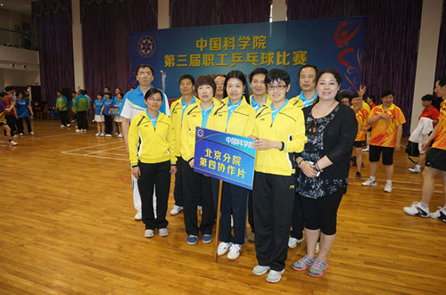 在6月6日结束的中国科学院第三届职工乒乓比赛中,由我所胡非、杨洁帆、何编、郭霞、范学花等主力队员组成的北京分院第四协作片队,在比赛中不畏强手,机智应战,大胆拼搏,以七胜一负的战绩获得混合团体赛小组赛第一名,成功进入决赛,在决赛中以1:2惜败给后来的全院冠军中国科技大学队,获得全院男女混合团体赛第七名。