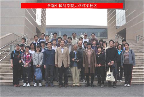 下午2: 30,活动成员集体前往国科大怀柔校区参观留影。国科大副校长苏刚和校办有关人员热情接待了本次活动。苏刚副校长还兴致勃勃的向大家介绍了坐落于青山绿水间的国科大校区。这里设施齐全,各项教学功能完备,为新入学的本科生和研究生提供了极佳的学习环境。大家表示,导师培养制的本科教育,加上研究生阶段的科研锻炼,这种一脉相承的教学模式,有利于培养出高素质的学术型人才。