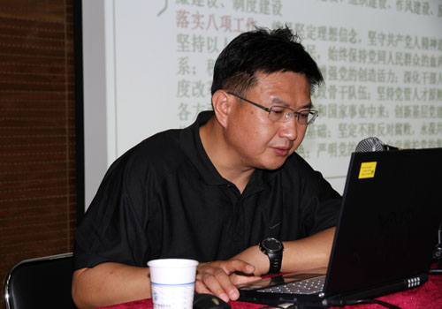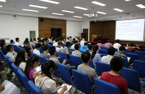 中央党校教授梁妍慧的报告题目为《加强党的先进性建设》,党的先进性建设包括党的执政能力建设和党的自身建设两个方面,要把科学发展和社会和谐作为当前执政能力建设的主要内容,而发展党内民主是党的生命,是防止权力腐蚀的根本途径,也是保持执政党先进性和纯洁性的有效措施。