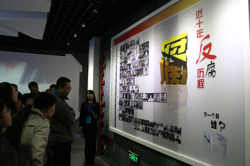 警示展厅位于海淀区看守所的监区内,在狱警的护送下,大家穿过双重互锁的铁门。当铁门隆隆降下,面对高墙、铁网,顿时感到气氛凝重起来。展厅通过滑轨电视、耻辱柱、故事墙等形式,展出了近十年来备受关注的案件和落马官员。视频中王怀忠、周良洛等落马官员声泪俱下、追悔莫及的诉说,让人不禁发出一声叹息,早知今日,何必当初呢?模拟监区的展示更是让人深深体会到失去自由的可怕,四面玻璃的盥洗室没有任何隐私可言,狭窄的监舍让人呼吸都感到困难……当参观结束,解说员带领大家走出沉重的铁门后,半开玩笑地说:“你们自由了。”大家顿时感到如释重负,不由的微笑了。