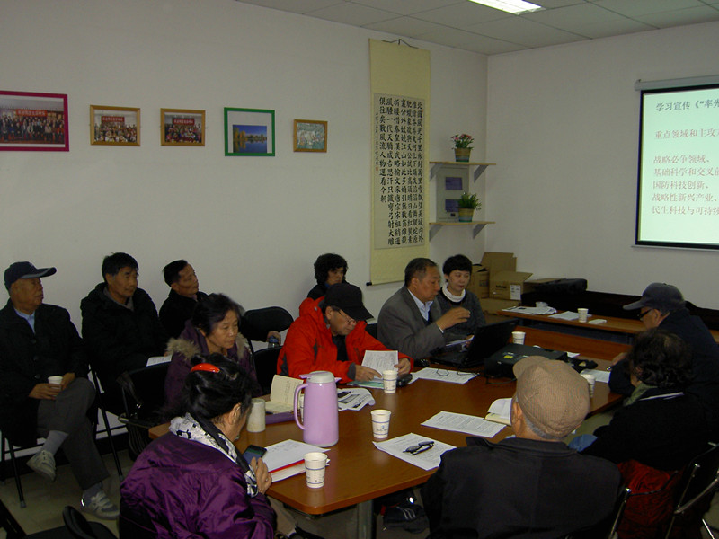 退休四党支部书记马万顺同志结合自己的心得向大家汇报了学习《中国科学院“率先行动”计划暨全面深化改革纲要》的主要精神和体会。退休二党支部书记李林亭同志向大家汇报了他参加11月2日中国科学院离退休干部局组织的座谈会。同时以“学习与健康”这条主线组织党支部开展活动进行了介绍。退管会副主任刘巧枝同志汇报了各个兴趣小组活动情况。