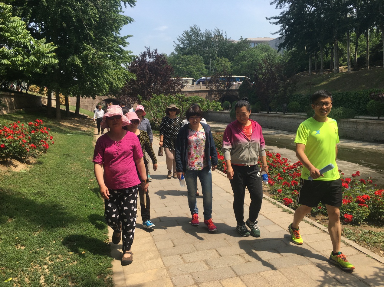 2015年5月13日星期五,雨过天晴,万里无云,大气所户外协会在元大都遗址公园举办了首次健步走活动。12点45分,报名参加此次活动的20余名职工与学生准时出现在科研楼大厅中,其中包括76岁高龄的中国科学院院士吕达仁及夫人刘锦丽研究员。