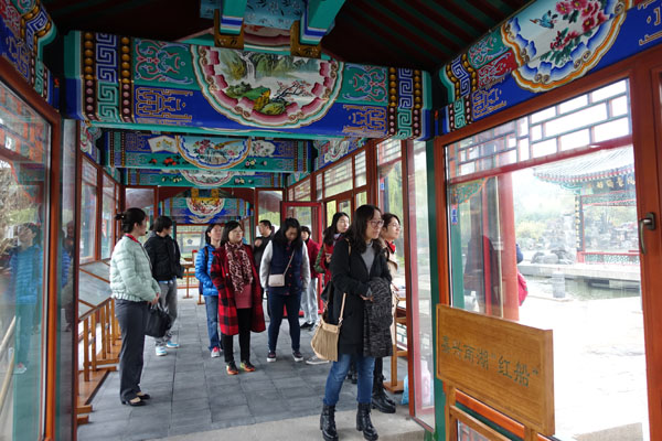 参观完校史馆,大家冒着蒙蒙细雨,来到了掠燕湖边,观看仿制的一大红船。95年前,来自全国的13名党代表在上海召开中国共产党第一次全国代表大会,其间由于法租界警察介入不得不转移到嘉兴南湖的一只游船上完成大会的最后议程。一大红船是中国共产党诞生的重要历史见证,彰显着开天辟地、敢为人先的首创精神,坚定理想、百折不挠的奋斗精神,立党为公、忠诚为民的奉献精神。