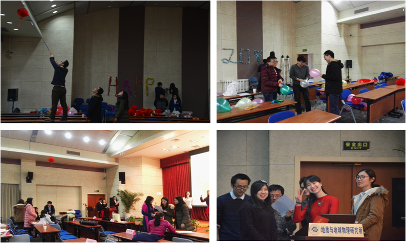 2016年12月28日晚,地质所二楼会议厅张灯结彩,气氛热烈。伴随着新年的脚步,令人期待的大气物理所2017年研究生元旦晚会如约而来。所党委书记陈洪滨研究员、副所长陆日宇研究员、工会主席李军、所长助理周天军研究员、国科大招生办公室蔡峥嵘以及研究生导师肖子牛、谢正辉、张美根、宣越健、毕训强、潘蔚琳、潘小乐、乐旭、宗海峰、陈活泼、邹立维、张立霞等及机关和支撑系统的老师们与全所300多名研究生欢聚一堂共同庆祝2017年元旦。