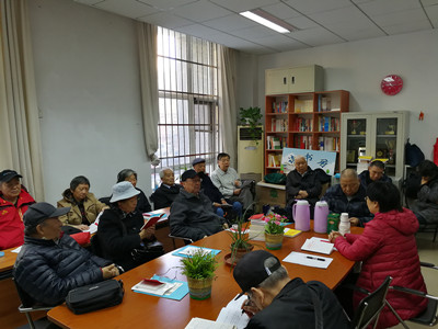2017年11月10日,退休一党支部在大气所离退休会议室,组织学习十九大报告和南仁东先进事迹座谈会。
