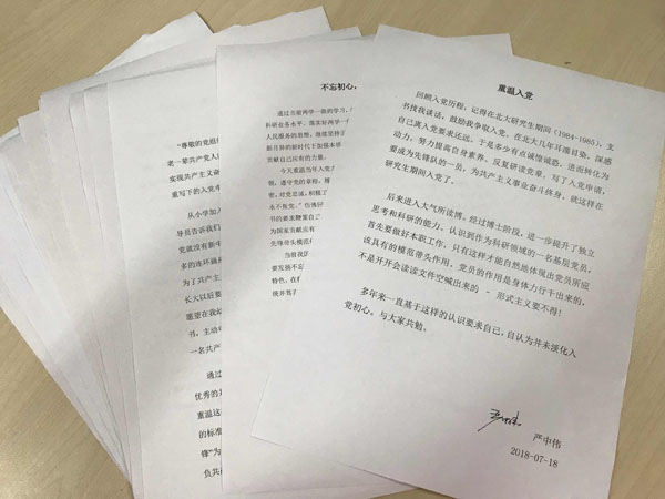 会上,赵天保回顾了19年前他入党时的“初心”,那就是踏实做事,本分做人,坚持对党的忠诚,牢记党的宗旨,坚持为人民服务。在几位重点发言的同志带动下,与会其他同志也纷纷讲述和回顾了自己的入党动机及入党以来的心路历程,大家表示,不忘初心,就要铸牢“四个意识”,对党绝对忠诚,始终高举习近平新时代中国特色社会主义思想伟大旗帜,努力当好马克思主义中国化最新成果的坚定信仰者和忠实践行者;不忘初心,就要坚持锤炼党性,永葆共产党人政治本色,坚守共产党人的精神家园,做到清清白白做人、干干净净做事,带头弘扬清风正气;不忘初心,就要勇于担当作为,在新时代发挥好党员的先锋模范作用。