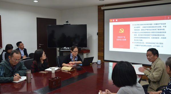 9月29日下午2:00,在大气所科研楼205会议室,机关召开党员大会,学习了新修订的《中国共产党纪律处分条例》(以下简称《条例》)。会议由机关党支部书记肖淑芬主持。