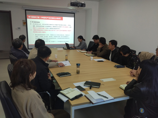 10月26日,淮南研究院党支部在淮南园区综合实验楼会议室召开专题学习会,学习传达院警示教育大会精神,学习新修订的《中国共产党纪律处分条例》。副所长、淮南研究院院长程新金到会指导,淮南研究院支部及相关人员共计15人参加学习。