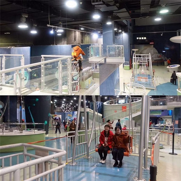 首先同学们来到了位于场馆一楼的“华夏之光”展区,在这里大家了解了古代中国在开采、农业技术、水利机械、纺织、建筑、航海等重要领域的发明创造,为祖先们的勤劳智慧以及中华民族源远流长的历史所折服。二楼的“探索与发现”主题展厅,主要介绍了声、光、电、力的相关技术和应用。有些同学还体验了在钢丝上登自行车的项目,亲自感受了上轻下重的“不倒翁”稳定原理。第三层是“科技与生活”展厅,以百姓生活的衣食住行作为展览的主要脉络,通过农业、生活健康、交通运输等展示科技发展对人类社会日益广泛和深刻的影响。其中的“绿色住宅”和“智能楼宇”向大家传播了节能、节水、节地、节材和环境保护的理念,与我们在全球变暖下,提倡的低碳生活不谋而合。最后同学们来到了位于四层的“挑战与未来”展厅。这里介绍了目前人类面临的重大问题和挑战,增强了同学们的危机意识,激发了大家通过新的研究解决问题的欲望。