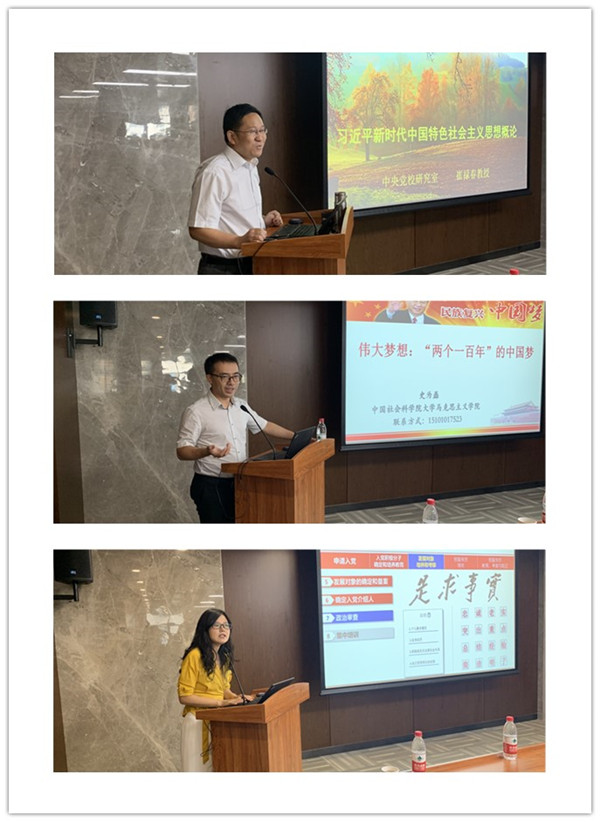 中央党校崔禄春教授,中国社会科学院大学史为磊副教授分别作了题为《习近平新时代中国特色社会主义思想》、《中华民族伟大最伟大梦想“两个一百年”的中国梦》的报告。高能所党办主任王欢就党员发展程序等党的基本知识作了深入解读。学员们观看了金一南教授的讲座视频《苦难辉煌——对国家和民族命运的思索》,老一辈无产阶级革命家在极其困难的环境下,建立红色政权、率领红军进行战略转移的伟大壮举让大家心潮澎湃,视频结束后学员们展开了极为热烈的讨论。