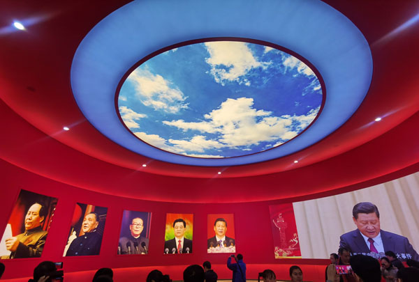 成就展围绕“开辟和发展中国特色社会主义道路,建设社会主义现代化国家”这一主题,充分宣传和展示新中国成立70年来以毛泽东、邓小平、江泽民、胡锦涛、习近平同志为主要代表的中国共产党人,团结带领全党全军全国各族人民,成功开辟和发展中国特色社会主义道路、建设社会主义现代化国家的光辉历程、伟大成就和宝贵经验,特别是党的十八大以来,以习近平同志为核心的党中央团结带领全党全军全国各族人民,统筹推进“五位一体”总体布局,协调推进“四个全面”战略布局的伟大实践。