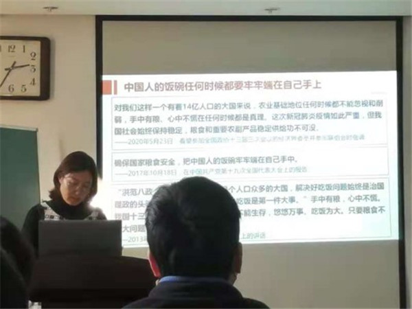 会上,首先李金华书记讲党课,题目是《确保粮食安全?制止餐饮浪费》,带领全体党员深入学习了习近平总书记关于粮食安全、节约粮食等一系列重要指示批示精神。李金华带领大家学习了《党政机关厉行节约反对浪费条例》等制度规定,除了会上的讨论,她还鼓励大家会后以邮件、微信、短信等形式开展批评与自我批评。