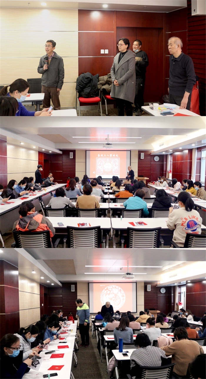 活动伊始,党委书记陆日宇首先向全所女职工致以节日的问候,希望大家在繁忙的工作之余,在活动中放松身心,度过愉快的节日。工会副主席赵光宇也亲临现场,与大家一起,在北京中国民间艺术协会、非遗传承人王俊林老先生的传授下开始剪纸活动。
