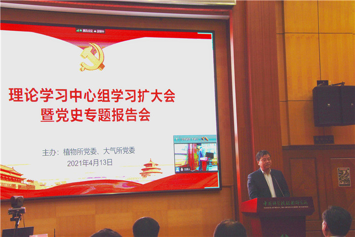 4月13日上午,大气所和植物所党委联合举办中心组学习扩大会暨党史专题报告会。大气所所长曹军骥带领中心组成员、纪委委员和党支部书记、委员等二十余人到植物所参加了报告会。报告会由植物所党委书记赵千钧主持。