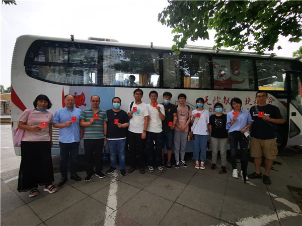 出发前,党委书记陆日宇同志、纪委书记占车生同志为大家送行。陆日宇表示,大家刚刚听完建党百年庆祝大会上习近平总书记的重要讲话,人心振奋,选择党的生日这天参加无偿献血活动,更是意义非凡。他感谢同志们奉献爱心的善举,叮嘱大家回来后要好好休息,以更饱满的精神投入到工作中。
