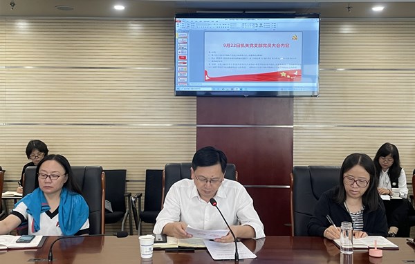 2021年9月22日下午,机关党支部召开党员大会,会议由支部书记李垒主持,纪委书记占车生和支部全体党员参加了会议。
